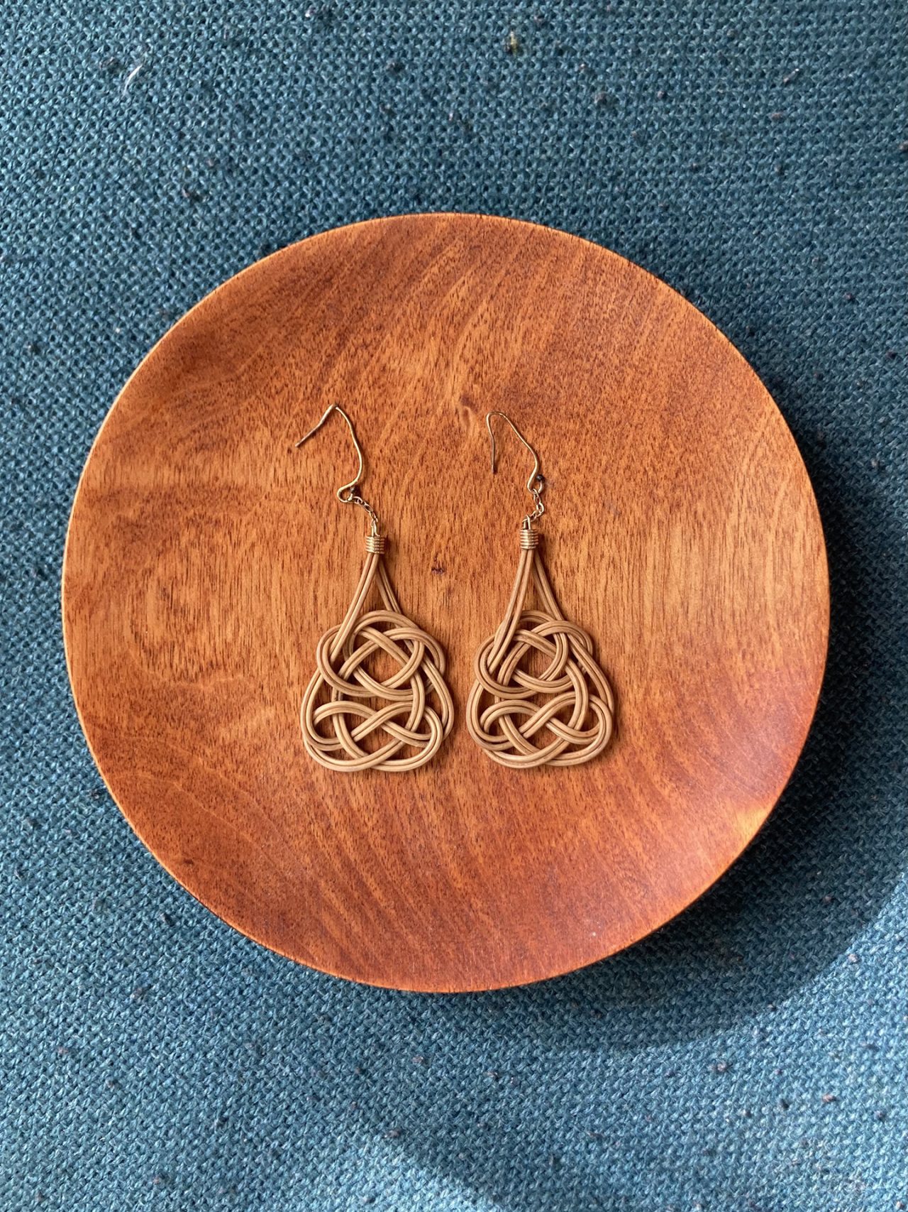 落とし物、失くし物の多い人間なので、あまりアクセサリーはつけないのですが、SIRI SIRI のピアスは馴染む感覚があって、もはや身体の一部のようにほぼ毎日つけています。割れたり欠けたりして、二代目を迎え入れたものもあるのですが、以前、ARABESQUE Earrings の片耳が割れてしまって、修理は難しい状態だということで新規で片耳を注文した際、私が持っていたものが現状の新規のものより細い素材でできていたため、籐編み職人の方が、当時のものに近づけてつくってくださり、経年変化して飴色になった色味に合わせて染めを施してくれました。もはやどちらが後から来たか自分では判別不能ですが、愛着は日に日に増していきます。