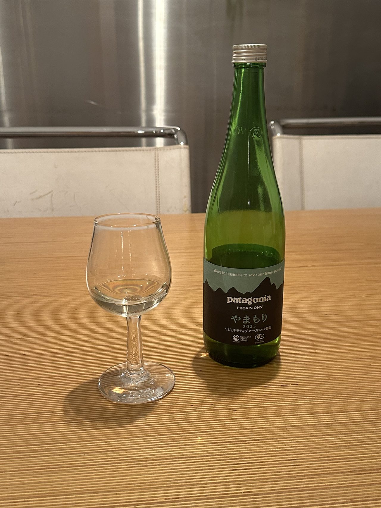 きっかけはパタゴニアさんの展示会でここ最近一口頂く日本酒です。仁井田本家さんの物と寺田本家さんの物をいままで飲ませてもらいました。今回の仁井田さんのやまもりも美味しく、リピートさせてもらっています。小さめのワイングラスに常温でがルーティンになっています。2025年の12月バージョンのやまもりは初めてリジェネラテイブオーガニック認証を取得した環境、自然に優しい方法で作られたお酒です。